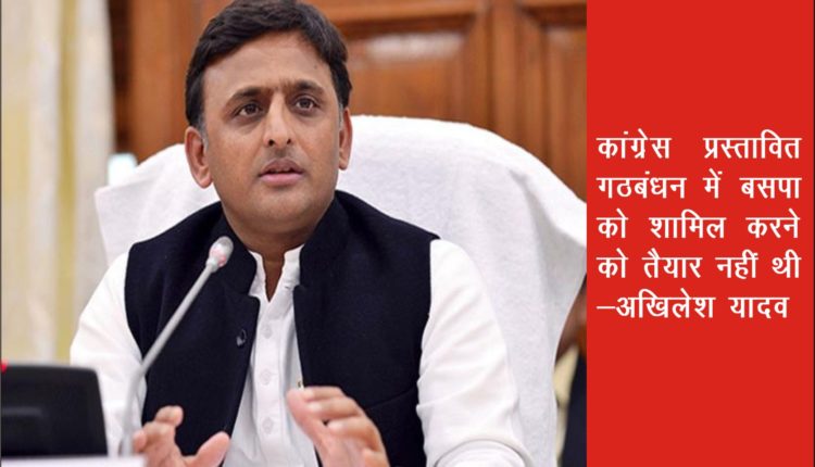 मध्य प्रदेश,कांग्रेस प्रस्तावित गठबंधन में बसपा को शामिल करने को तैयार नहीं थी-अखिलेश यादव